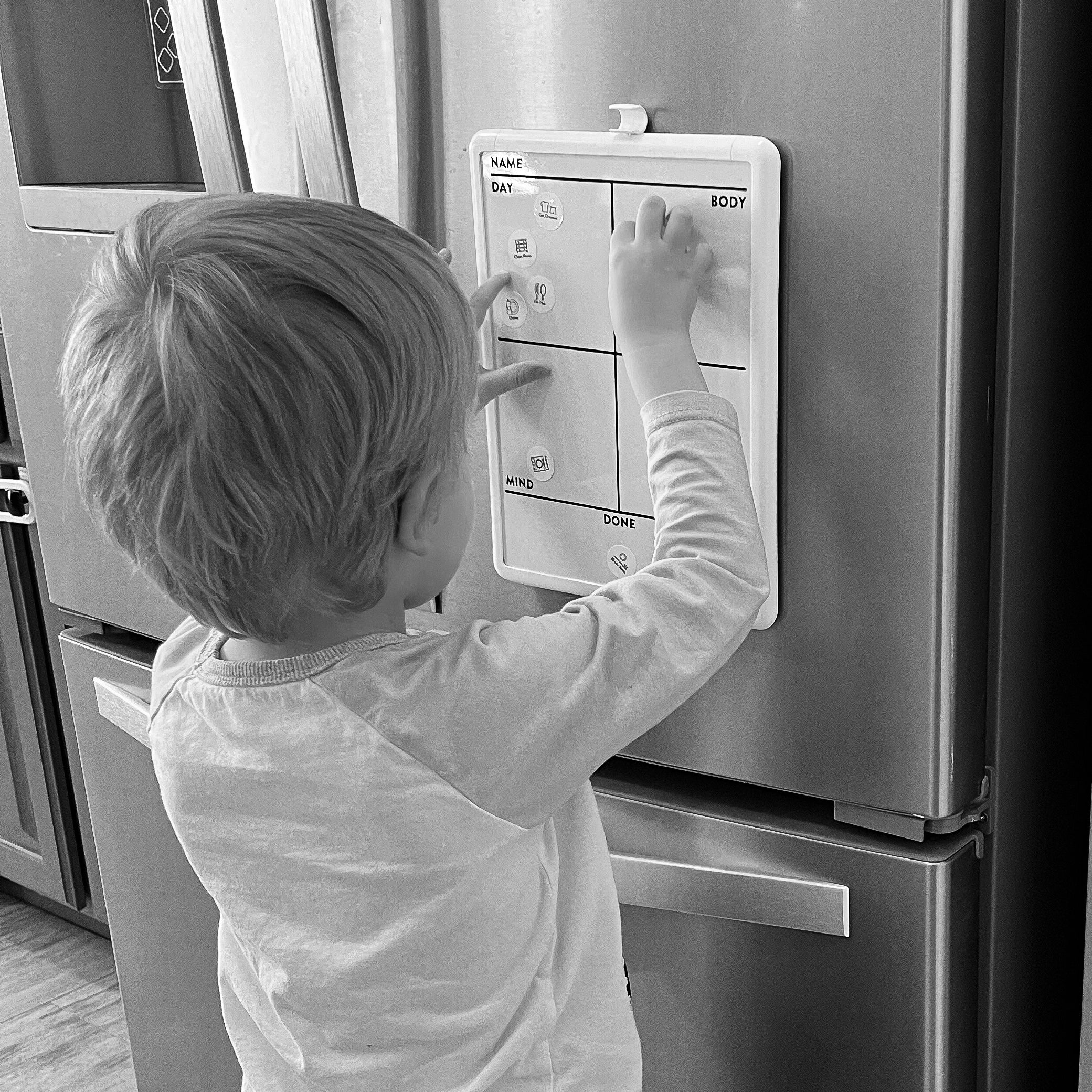 As they finish tasks, kids move clings to the DONE column — building satisfaction and momentum.